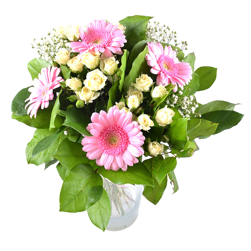 Состав: Гербера (4 шт.), кустовая роза (3 шт.), салал (0,5).