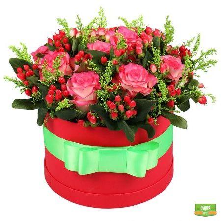 Композиция из розовых роз в шляпной коробке однозначно заставит трепетать от волнения сердце дорогой получательницы. Яркая и привлекательная композиция состоит из малиновых роз, которые бережно обволакивают изумрудный солидаго и жгучий гиперикум.